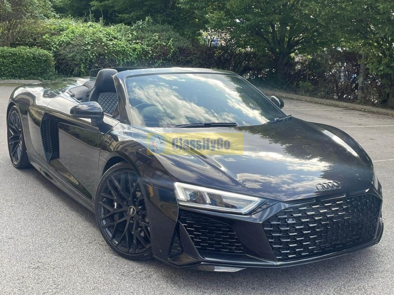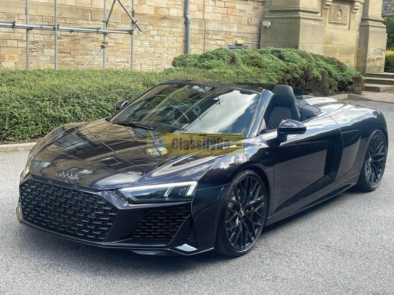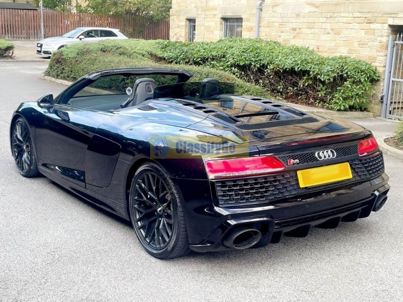 2018 67 AUDI R8 5.2 FSI V10 SPYDER S TRONIC QUATTRO FULL 2021 PERFORMANCE FACELIFT IN METALLIC BLACK FULLY LOADED HUGE SPEC EVERY OPTIONAL INC: FULL INTERIOR CARBON PACK, FULL EXTERIOR CARBON PACK (FACTORY ) , BANG & OLUFSEN SOUND SYSTEM, AUTO ADAPTIVE HEADLIGHTS, BLACK EXTENDED LEATHER, SPORTS EXHAUST FROM FACTORY , RACE MODE
